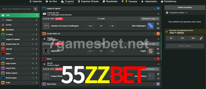 O 55ZZbet oferece uma grande seleção de opções de apostas em e-sports com probabilidades competitivas